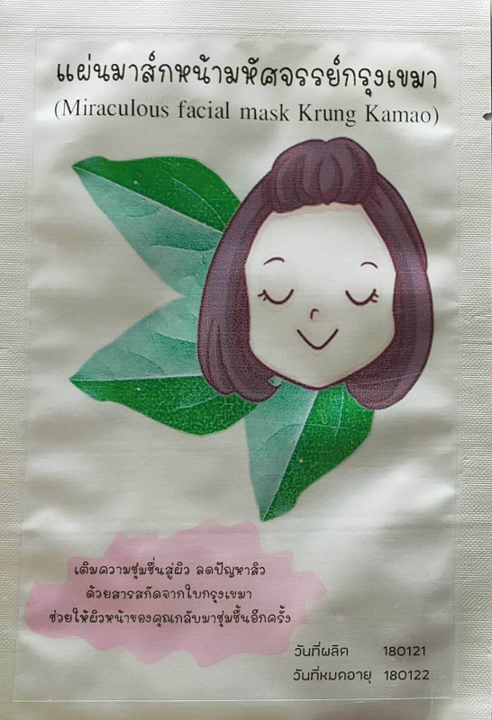 แผ่นมาส์คหน้า เป็นผลิตภัณฑ์เอนกประสงค์ที่มีความนิยมมากในปัจจุบัน มีความสะดวกสบายในการใช้งาน กรุงเขมาเป็นพืชสมุนไพร ใบใช้เป็นยาพอกเฉพาะที่ หมอยาพื้นบ้านจะนำใบมาสกัดให้เป็นวุ้น นำมาพอกหน้า เพื่อบำรุงผิว แก้สิว ลดผดผื่นคันบนใบหน้า ช่วยเพิ่มความชุ่มชื้น ความนุ่มเนียนลดความร้อนให้กับผิว ผู้วิจัยได้มีแนวคิดที่จะนำใบกรุงเขมามาสกัดให้เป็นวุ้นสำหรับเป็นส่วนผสมในแผ่นมาร์คหน้าให้มีประสิทธิภาพและสะดวกต่อการใช้งาน