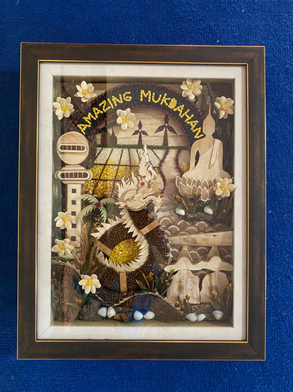 เป็นภาพปะติด 3 มิติ ที่ทำจากวัสดุธรรมชาติเป็นมิตรกับสิ่งแวดล้อม และสามารถหาวัสดุได้ง่ายในท้องถิ่น แล้วนำภาพ ที่ประดิษฐ์เสร็จนั้นมาเข้ากรอบรูป ใช้เป็นของฝากของที่ระลึกจากจังหวัดมุกดาหาร ใช้ประดับตกแต่งภายในอาคาร สำนักงาน บ้านเรือน ให้มีความสวยงาม