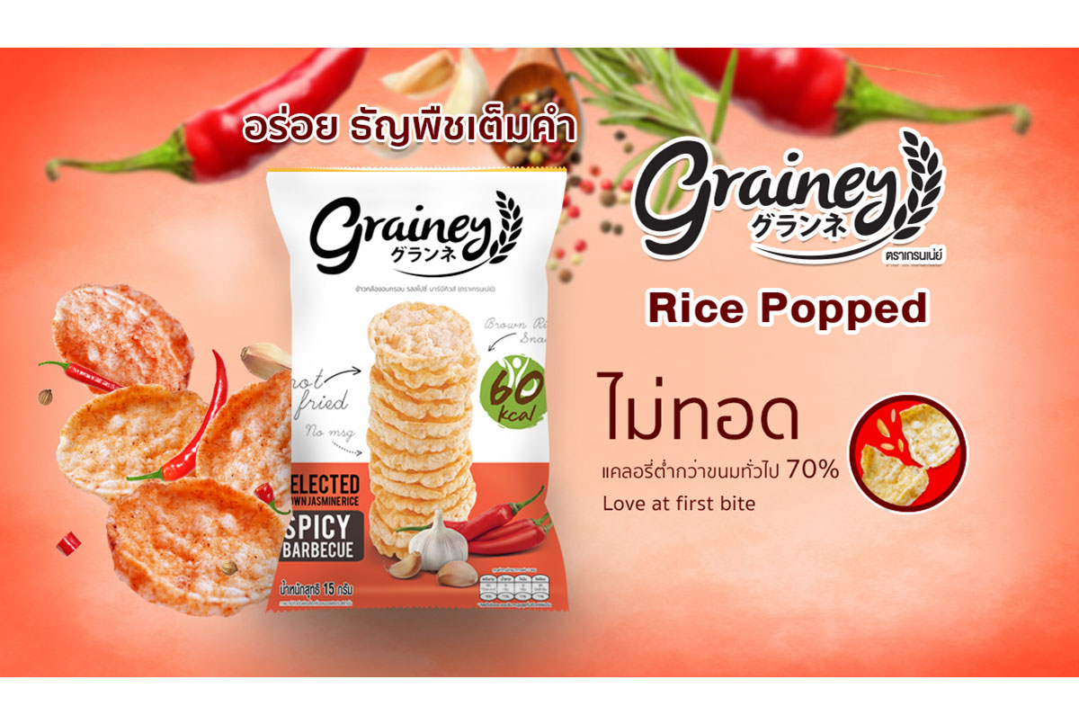 นวัตกรรมอาหารเพื่อสุขภาพ ขนมขบเคี้ยวที่ได้จากการคัดสรรข้าวกล้องหอมมะลิชั้นดี ที่มีคุณประโยชน์สูง ไม่มีการใช้สารเคมี โดยผ่านกรรมวิธีการป็อป แทนการทอด ทำให้ข้าวกล้องพองตัวออกมากที่สุด เมื่อรับประทานเข้าไปจะทำให้รู้สึกอิ่มเร็ว เป็นขนมทางเลือกให้กับผู้บริโภคที่ใส่ใจสุขภาพและต้องการลดน้ำหนัก มีแคลอรี่ต่ำ ไฟเบอร์สูง อีกทั้งยังอุดมไปด้วยวิตามิน แร่ธาตุ และไม่มีผงชูรส มีประโยชน์ต่อร่างกาย