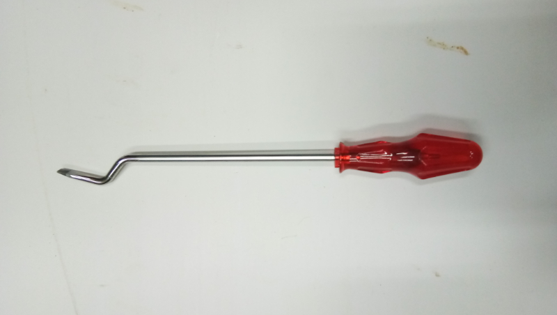 คุณลักษณะ เป็นไขควงที่มีปลายงอเข้ารูปสำหรับแกะ งัดยางก้อนถ้วย คุณสมบัติผลงาน ใช้แกะยางก้อนถ้วยได้ง่ายและใช้ขูดทำความสะอาดเศษยางที่ติดตามถ้วยยางได้ดี ประสิทธิภาพ ผลการศึกษาความพึงพอใจในการใช้งานของอุปกรณ์แกะก้อนถ้วยภาพรวม อยู่ในระดับดีมาก โดยมีค่าเฉลี่ยเท่ากับ 4.79
