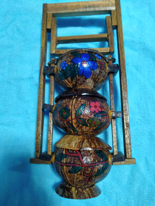 งานวิจัยผลิตภัณฑ์ คุณปิ่นโต ได้พัฒนาจากการนำกะลามะพร้าวซึ่งเป็นวัสดุเหลือใช้จากการใช้งานและธรรมาชาติ จึงได้คิดดัดแปลงมาเป็นปิ่นโตกะลามะพร้าวนำมาใช้งานบบรจุอาหาร แล้วเพ็นท์ลวดลาย เพื่อความสวยงาม งานวิจัยครั้งนี้มีวัตถุประสงค์1.เพื่อออกแบบสร้างคุณปิ่นโต 2.เพื่อหาคุณภาพด้านการออกแบบสร้างคุณปิ่นโต 3. เพื่อศึกษาความพึงพอใจของผู้บริโภคที่มีต่อคุณปิ่นโต และผู้บริโภคมีความพอใจต่อผลิตภัณฑ์คุณปิ่นโตอยู่ในเกณฑ์ที่ดีตามวัตถุประสงค์ที่ได้ตั้งไว้