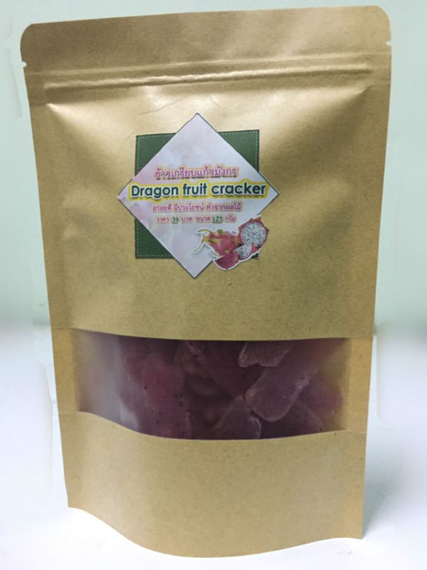 1. เป็นผลิตภัณฑ์ข้าวเกรียบแก้วมังกรที่พัฒนาเพื่อต่อยอดในเชิงธุรกิจได้