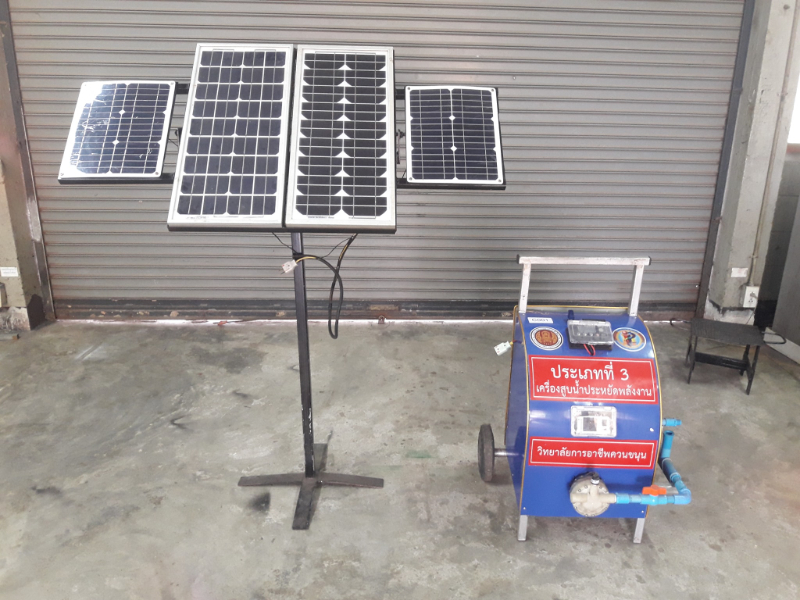 เครื่องสูบน้ำประหยัดพลังงานหมายถึง เครื่องสูบน้ำโดยใช้พลังงานจากแสงอาทิตย์ไปเก้บไว้ในแบตเตอร์รี่ ทำให้ลดการใช้พลังงานน้ำมันและไฟฟ้าและไม่ก่อให้เกิดมลพิษในอากาศเพิ่มรายได้ ลดรายจ่าย สูบน้ำได้ทุกพื้นที่โดยไม่ใช้ไฟฟ้า