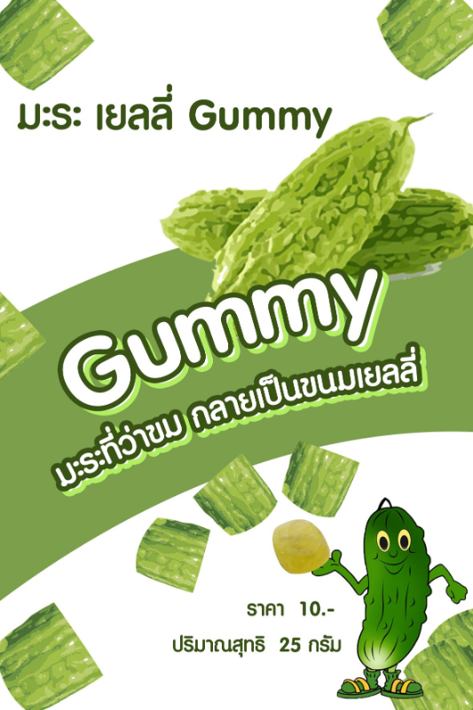 เป็นขนมเยลลี่ที่มีคุณค่าทางอาหาร โดยการนำมะระมาเป็นส่วนผลสมหลักในขนมเยลลี่Gummy มีรสชาติอมเปรี่ยวอมหวานมีความขมเล็กน้อย มีรสชาติ ที่ถูกปาก สามารถเป็นส่วนหนึ่ง ในการช่วยให้บุคคลที่ไม่ชอบทานมะระ ไม่ว่าจะเป็นเด็กหรือผู้ใหญ่เมื่อบริโภคเแล้ว จะได้คุณประโยชน์ต่อร่างกายจากมะระที่มีมีสรรพคุณช่วยเสริมสร้างภูมิคุ้มกันโรคและช่วยปกป้องเซลล์จากการทำลายของสารก่อมะเร็งต่าง ๆ ลดระดับน้ำตาลในกระแสเลือดเนื่องจากมีการเผาผลาญกลูโคส และช่วยในเรื่องการย่อยอาหาร ปรับปรุงการทำงานของถุงน้ำดี และลดอาการบวมน้ำ โรคตับแข็ง โรคตับอักเสบ และอาการท้องผูกได้