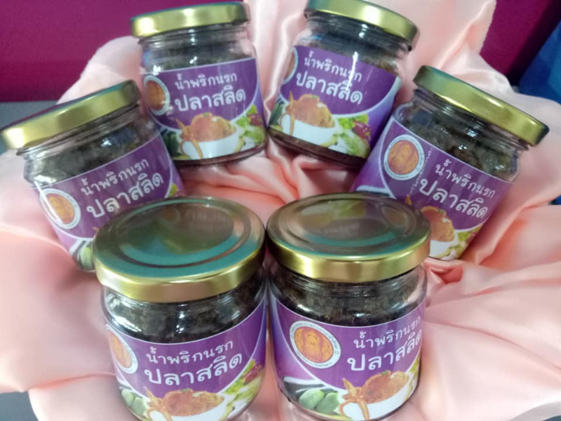 การวิจัยครั้งนี้ มีวัตถุประสงค์เพื่อศึกษาพัฒนาผลิตภัณฑ์ “น้ำพริกนรกปลาสลิด”โดยใช้วิธีการวิจัยเชิงทดลอง ผู้จัดทำดำเนินการวิจัย แบ่งออกเป็น 3 ส่วน ส่วนแรก ผู้วิจัยทดลองสูตร จำนวน 3 สูตร และทดสอบประสาทสัมผัสเพื่อหาสูตรพื้นฐานที่ดีที่สุด ผลการทดลองปรากฏว่าผู้บริโภคส่วนใหญ่ ชอบน้ำพริกสูตรที่ 2 พริกแห้ง 7.41 %กุ้งแห้ง 22.22 %หอมแดงซอย14.81% กระเทียมซอย 22.22 % น้ำปลา 7.41 % น้ำตาลทราย 14.81 % น้ำมะขามเปียก 11.12 % ส่วนที่ 2 ผู้วิจัยนำสูตรพื้นฐานที่ได้รับการยอมรับมาปรับปรุงสูตร โดยใส่เนื้อปลาสลิดแทนกุ้งแห้งและหอมแดงซอย 15 % คิดเป็น 51.84 % และปรับปรุงสูตรโดยประกอบด้วยพริกแห้ง 7.41 % ปลาสลิด 51.84 % กระเทียมซอย 22.22% น้ำตาลทราย 14.81 % เกลือ 7.41 % น้ำมะขามเปียก 8.12 % และน้ำส้มสายชู 2% ส่วนที่ 3 นำน้ำพริกนรกปลาสลิดไปทดลองซ้ำครั้งที่ 2 เพื่อนำไปทดสอบความพึงพอใจ ซึ่งผลปรากฏว่ามีค่าเท่ากับ 4.29 (มาก)