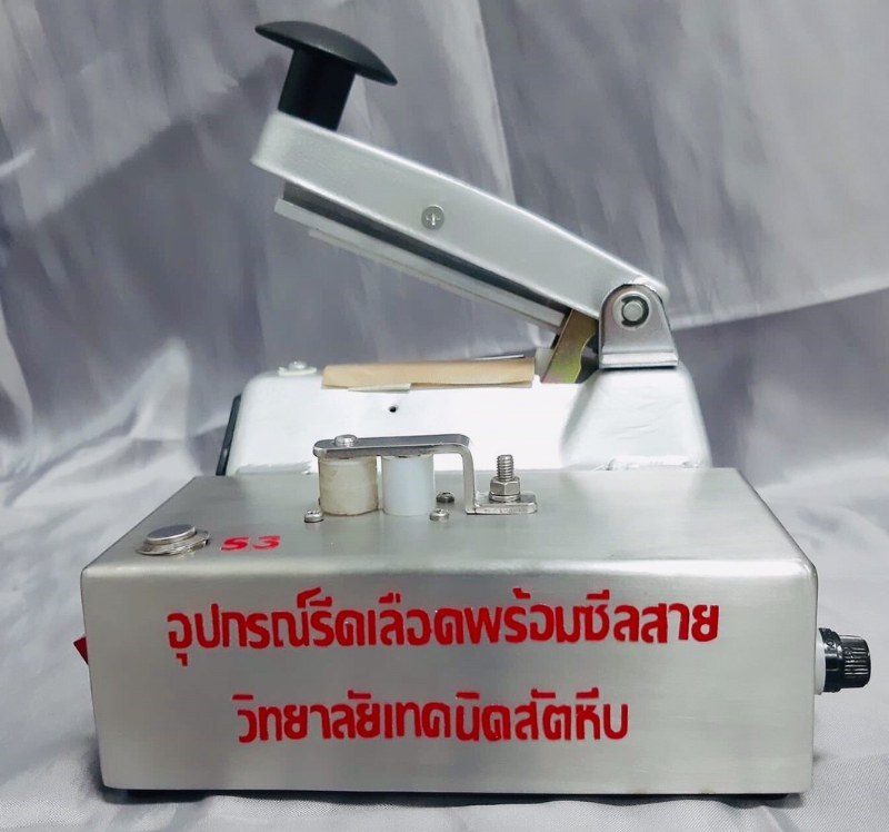 อุปกรณ์รีดเลือดพร้อมซีลสายสามารถนำไปใช้งานได้จริงอย่างมีประสิทธิภาพ สามารถรีดเลือดตามสายได้ทั้งหมด และมีที่ซีลสายที่ปิดได้สนิทโดยใช้ความร้อนจากขดลวดนิโครม ทำให้เลือดไม่ไหลย้อนมาตามสายได้ อีกทั้งยังทำสูญญากาศภายในถุงอีกด้วย