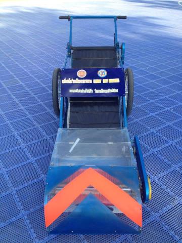 1ใช้สำหรับเก็บข้าวเปลือกจากลานตากที่ราบเรียบ 2เก็บข้าวเปลือกในลักษณะการปัดกวาดโดยใช้มอเตอร์ไฟฟ้ากระแสตรง 12 โวลต์เป็นเครื่องต้นกำลัง 3ข้าวเปลือกที่เก็บจากลานตากถูกลำเลียงด้วยสายพานลำเลียงใส่กระสอบข้าว ซึ่งใช้มอเตอร์ไฟฟ้ากระแสตรง 12 โวลต์ เป็นเครื่องต้นกำลัง 4ใช้ไฟฟ้ากระแสตรง จากแบตเตอรี่ 12 โวลต์ 5สามารถควบคุมความเร็วมอเตอร์ไฟฟ้ากระแสตรง ชุดปัดกวาดข้าวเปลือกได้ 1ได้เครื่องเก็บข้าวเปลือกจากลานตากไว้ใช้เก็บข้าวเปลือกที่ทำการผึ่งตากกำจัดความชื่น 2ลดต้นทุนแรงงานและเวลาในการเก็บผลผลิตข้าวเปลือกหลังจากผึ่งตากจากลานตาก 3สามารถนำเครื่องเก็บข้าวเปลือกจากลานตาก ไปสร้างอาชีพเพิ่มรายได้ในการเก็บข้าวเปลือก