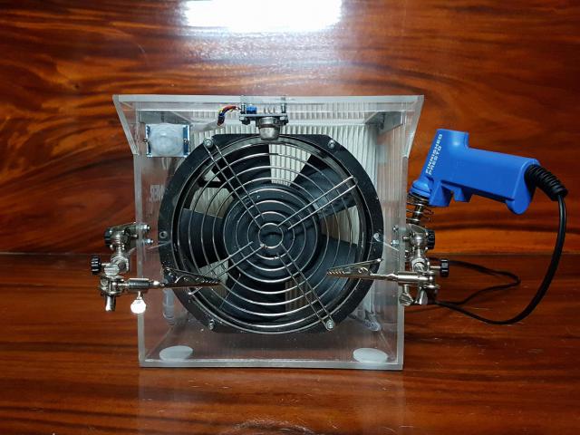 เครื่องดูดควันตะกั่วมีขนาด กว้าง 20 ซม. ยาว 30 ซม. สูง 20 ซม. ใช้แรงดันไฟฟ้า 220 โวลต์ ใช้เซนเซอร์ในการตรวจจับควันตะกั่ว สามมารถดูดควันตะกั่วได้ในระยะ 15 ซม. และมีแผ่นฟิลเตอร์ในการกรองควันตะกั่ว และมีปุ่มกดการทำงานแบบแมนนวลในเวลาเซนเซอร์เสีย สามารถดูดควันตะกั่วและลดปริมาณสารพิษได้