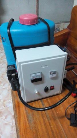 เครื่องพ่นยาอัตโนมัติ จะอาศัยการดูดน้ำยาจากมอเตอร์ปั๊ม ซึ่งจะควบคุมผ่านสวิตซ์และสามารถความปริมาณน้ำยาในการฉีดพ่น โดยอาศัยการควบคุมความเร็วมอเตอร์ อีกทั้งมีระบบบายพาสน้ำยาภายในถังกรณีไม่มีการพ่นยา มอเตอร์ปั๊มจะใช้พลังงานจากแบตเตอรี่โดยมีอุปกรณ์อัดประจุแบตเตอรี่ภายในเครื่อง 1เพื่อสร้างและประสิทธิภาพของเครื่องพ่นยาอัตโนมัติ 2เพื่อลดความเหนื่อยล้าของชาวเกษตรกร
