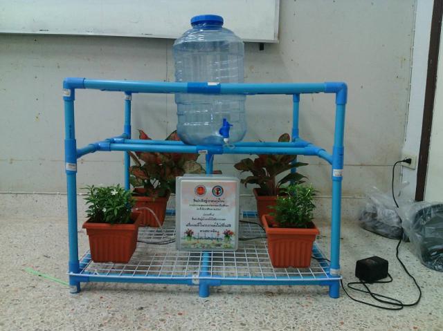 เครื่องรดน้ำในกระถางต้นไม้อัตโนมัติตามสภาพดิน เป็นสิ่งประดิษฐ์ที่ทำการรดน้ำต้นไม้ในกระถาง ด้วยระบบอัตโนมัติควบคุมด้วยวาล์วไฟฟ้า โดยใช้เซ็นเซอร์ soil moisture sensors เป็นตัววัดค่า โดยทำการเปรียบเทียบกับค่าที่ต้องการตั้งไว้อ้างอิงกับค่าปัจจุบัน หากมีค่าน้อยกว่าก็จะส่งข้อมูลไปยัง ไมโครคอนโทรลเลอร์ ให้ปล่อยน้ำออกมาเพื่อรดต้นไม้ จนกว่าจะมีความชื้นของดินตามค่าที่ตั้งไว้ และกระทำไปเรื่อยจนกว่าน้ำในขวด จะหมด 1เป็นสิ่งประดิษฐ์ที่ใช้รดน้ำในกระถางต้นไม้ โดยอัตโนมัติ 2ลดเวลาในการต้องมารดน้ำต้นไม้ ในช่วงเวลาต่างๆ 3ใช้ขวดน้ำคว่ำลงดินในการปล่อยน้ำ ทำให้ดอกและใบไม้ไม่เปียกน้ำ ลดการเกิดโรคที่เกี่ยวกับต้นไม้ 4เพิ่มรายได้ในการทำธุรกิจ เกี่ยวกับไม้ดอกไม้ประดับ
