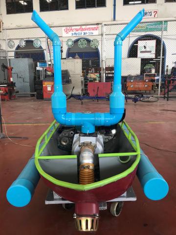 เรือรดน้ำร่องสวนบังคับวิทยุ ได้คิดค้นสิ่งประดิษฐ์เครื่องมือนี้ขึ้นมา โดยที่เครื่องมือนี้ใช้งานง่ายใช้วัสดุอุปกรณ์ไม่ซ้ำซ้อนมากนักเมื่อก่อนเสียเวลามากในการใช้คนลากเรือสูบน้ำเอาเวลาไปทำอย่างอื่นได้ กระผมจึงนำแนวคิดมาจากเรือสูบน้ำแบบใช้คนลากมาดัดแปลงให้ง่ายขึ้นทำงานง่ายใช้งานง่ายซึ่งเครื่องมือที่ซื้อมาจากท้องตลาดค่อนข้างมีราคาแพงกว่าประดิษฐ์เอง กระผมหวังเป็นอย่างยิ่งว่าเครื่องมือชนิดนี้ คงจะเป็นประโยชน์ต่อผู้ที่สนใจงานสิ่งประดิษฐ์ไม่มากก็น้อย