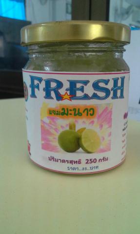 แยมจากเยื่อมะนาว ซึ่งเป็นผลิตภัณฑ์ที่น่าสนใจมาก เพราะสามารถใช้ทาขนมปัง หรือใช้สำหรับแต่งหน้าเค้กก็ได้ แยมมะนาวมีรสชาติดี รสหวานอมเปรี้ยวมีกลิ่นรสของมะนาว กรรมวิธีการทำก็สามารถใช้อุปกรณ์ที่มีอยู่ในครัวเรือน