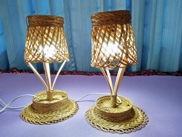 โคมไฟจักสานจากก้านจาก (Wicker lamp from nipa palm stem)