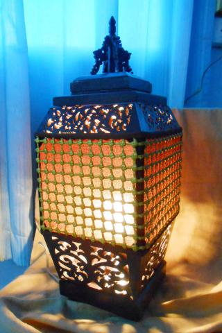 โคมไฟ สานเส้นสาย ลายฉลุ เป็นโคมไฟแบบตั้งโต๊ะ เคลื่อนย้ายได้ง่าย โคมไฟมีรูปทรงที่ดัดแปลงจากโดมมาตัดทอนให้มีความเรียบง่าย มีแนวคิดผสมผสานระหว่างงานจักสานกับการฉลุลาย เป็นโคมไฟที่ให้แสงสว่างน้อย แสงนุ่มนวล สม่ำเสมอเหมาะสำหรับห้องพักผ่อน ห้องนอน ช่วยสร้างบรรยากาศ โดยคำนึงถึงประโยชน์ใช้สอย ควบคู่กับความสวยงาม