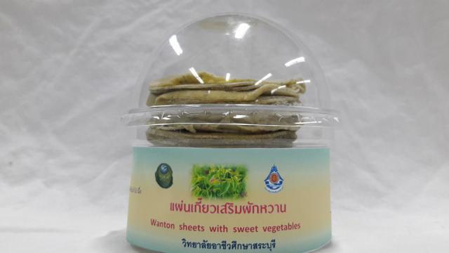 โครงงานวิจัย เรื่อง การพัฒนาผลิตภัณฑ์แผ่นแป้งเกี๊ยวเสริมผักหวาน (Development of product about wanton sheets with sweet vegetables) โดยมีจุดมุ่งหมายของการศึกษาค้นคว้า ดังนี้ 1. เพื่อศึกษาสูตรพื้นฐานของผลิตภัณฑ์แผ่นเกี๊ยว 2. เป็นการส่งเสริมการแปรรูปผลิตภัณฑ์ผักหวานให้เกิดประโยชน์ในเชิงพาณิชย์ 3. สามารถนำผลงานไปเผยแพร่ในการถ่ายทอดเทคโนโลยีให้ชุมชนต่อไป 4. เพื่อพัฒนาผลิตภัณฑ์ใหม่ ด้วยวัตถุดิบจากธรรมชาติ 5. เพื่อเพิ่มมูลค่าให้กับพืชผลท้องถิ่น