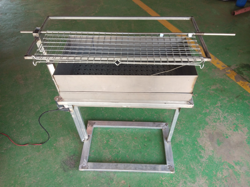 เตาปิ้งย่างหมูกึ่งอัตโนมัติ ทำมาจากวัสดุสแตนเลส ซึ่งเหมาะสมเกี่ยวกับด้านอาหาร มีความแข็งแรงทนทาน และสามารถพลิกกลับด้านหมูปิ้งได้เองโดยการใช้ระบบเข้ามาควมคุม ช่วยลดภาระคนในการพลิกกลับด้านหมูปิ้ง