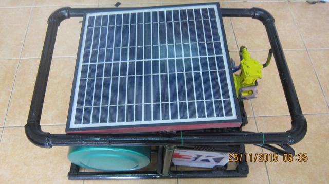 ปั๊มลมพลังงานแสงอาทิตย์ เป็นปั๊มลมที่มีขนาดเล็ก สามารถเคลื่อนย้ายได้สะดวก นำไปใช้ในสถานที่ที่ไม่มีไฟฟ้าได้ อาศัยหลักการทำงานโดยนำพลังงานแสงอาทิตย์มาเปลี่ยนเป็นพลังงานไฟฟ้ากระแสตรง 12 V เพื่อจ่ายให้แก่เครื่องปั๊มลม 1ช่วยลดการใช้พลังงานไฟฟ้า 2ใช้ในการปั๊มลมได้จริง 3ช่วยเพิ่มความสะดวกในเคลื่อนย้ายไปปั๊มลมนอกสถานที่ 4ใช้เป็นช่องทางในการประกอบอาชีพ