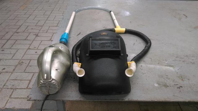 หน้ากากดูดควันเชื่อม (Welding Hood) เป็นอุปกรณ์สำหรับใช้ดูดควันเชื่อมขนาดเล็กสามารถพกพาได้อย่างสะดวก โดยใช้พลังงานไฟฟ้าผ่านเครื่องดูดฝุ่นชนิดพกพาแล้วต่อสายไปยังตัวหน้ากากเชื่อมแบบสวมศีรษะทั่วไป เมื่อทำการเชื่อมโลหะต้องทำการเปิดสวิทซ์เพื่อให้เครื่องดูดฝุ่นทำงาน เครื่องดูดฝุ่นจะทำหน้าที่ดูดควันที่เกิดจากการเชื่อมโลหะออกมาตามท่อที่ได้ทำการต่อไว้ ควันจะไหลผ่านท่อมายังเครื่องดูดฝุ่นและระบายทิ้งด้านหลังของผู้ปฏิบัติงาน และไม่ก่อให้เกิดการฟุ้งกระจายของควันเชื่อมโลหะ ซึ่งหน้ากากดูดควันเชื่อมสามารถช่วยลดปริมาณควันเชื่อมโลหะที่ฟุ้งกระจายอยู่บริเวณหน้าผู้ปฏิบัติงานเชื่อมโลหะได้อย่างน้อย 50 เปอร์เซ็นต์ ของควันเชื่อมที่เกิดขึ้น ช่วยลดปริมาณควันเชื่อมโลหะที่ฟุ้งกระจายอยู่บริเวณหน้าผู้ปฏิบัติงานเชื่อมโลหะได้