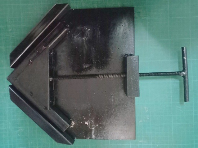อุปกรณ์จับฉากเชื่อมเหล็ก 90 องศา ที่สร้างขึ้นมีขนาดความยาว กว้าง × ความยาว × ความสูง เท่ากับ 12 × 12 × 1 มิลลิเมตร มีส่วนประกอบที่สำคัญ 3 ส่วน ได้แก่ ตัวโครง ฐานยึดจับ และด้ามจับหมุน มีอุปกรณ์ควบคุมการทำงานในการจับชิ้นงานจำนวน 2 ชุดคือ ชุดแรกคืออุปกรณ์ควบคุมการทำงานโดยการยึดจับชิ้นงาน ให้ได้ มุม 90 องศา ส่วนชุดที่สองคือ อุปกรณ์สามารถทำงานในการจับชิ้นงานที่ปรับขนาดของเหล็กที่ต้องการเชื่อมได้ 1 ช่วยอำนวยความสะดวกในการเชื่อมเหล็กให้ได้ ฉาก 2 ลดระยะเวลาในการเชื่อมเหล็ก 3 ลดปัญหาการเชื่อมเหล็กที่ไม่ได้องศาและอันตรายจากการเชื่อมเหล็ก