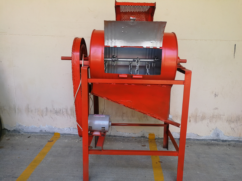 โครงสร้างของเครื่องทำจากจากวัสดุคือถังเหล็ก 100 ลิตร มีต้นกำลังขับด้วยมอเตอร์กระแสสลับ 0.5 แรงม้า ส่งกำลังด้วยสายพาน และเพลาสีข้าวโพดด้วยโซ่ การใช้งานจะนำข้าวโพดดิบปลอกเปลือกและใส่ลงที่ฝาปิดด้านบน จากนั้นเมื่อเครื่องปั่นจะได้เมล็ดข้าวโพดดิบออกมาจากฝักทั้งหมด เพื่อนำไปใช้เป็นอาหารสัตว์ในฟาร์มขนาดเล็กต่อไป ใช้สำหรับสีเม็ดข้าวโพดออกจากฝัก เผื่อนำเม็ดข้าวโพดไปผสมเป็นอาหารสัตว์