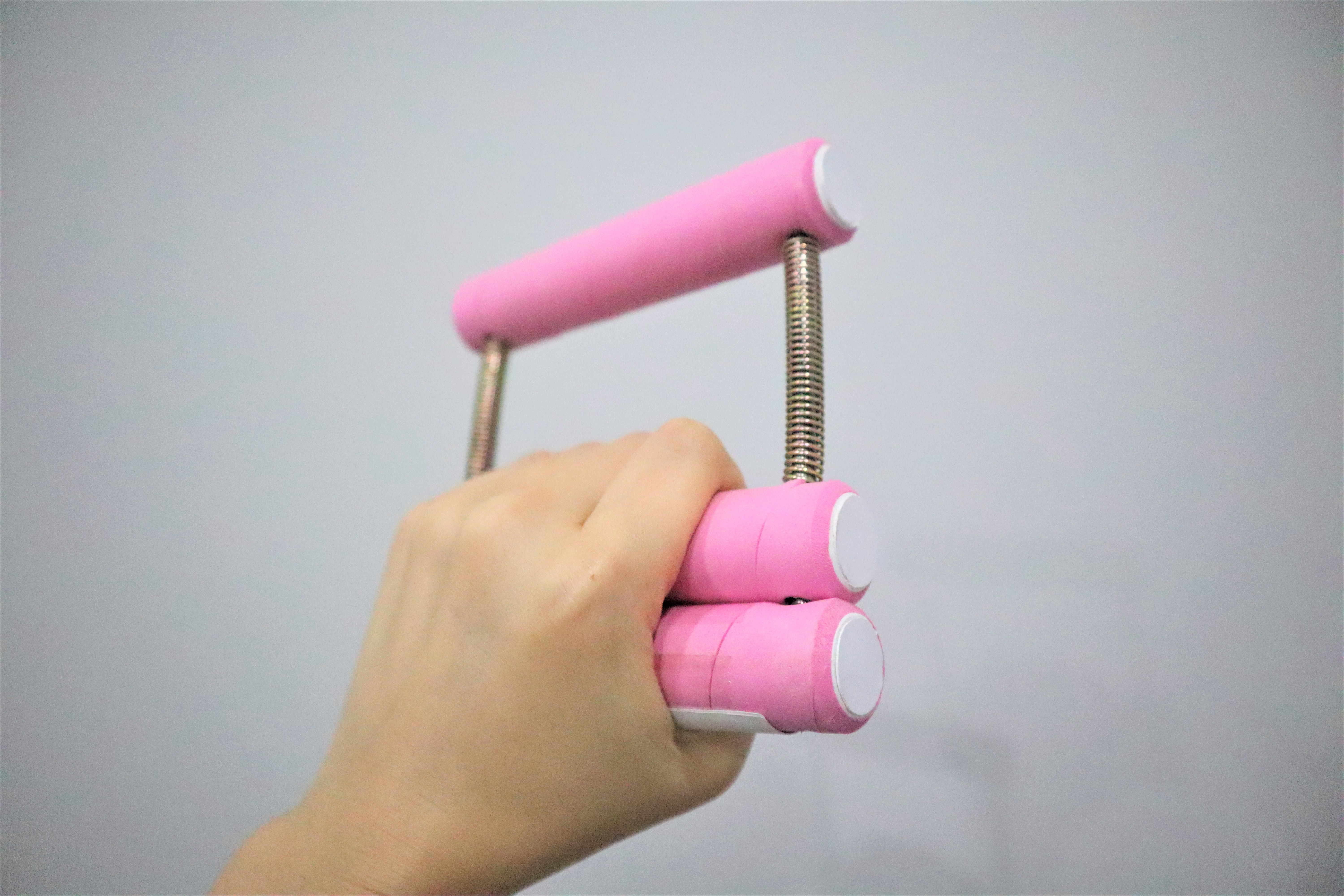 การประดิษฐ์นี้ จึงได้พัฒนาอุปกรณ์ออกกำลังสำหรับมือในการฝึกแรงต้านแบบเกร็งค้างด้วยมือ (isometric handgrip exercise) โดยประยุกต์จากเครื่องวัดแรงบีบมือของกล้ามเนื้อที่เป็นเครื่องมือวัดสมรรถภาพทางกาย มาสร้างเป็นเครื่องมือในการฝึกออกกำลังกายแบบเกร็งค้างด้วยมือ ประกอบด้วยแกนจับและสปริงสำหรับออกแรงดึง ทำให้ผู้ที่ฝึกฝนโดยการใช้อุปกรณ์นี้ มีความแข็งแรงของใยกล้ามเนื้อและความหนาแน่นของกระดูกเพิ่มขึ้น ช่วยป้องกันและลดอาการปวดข้อ อีกทั้งยังช่วยในการรีดเลือดจากเส้นเลือดดำในกล้ามเนื้อแขนกลับไปยังไหล่ ทรวงอก และหัวใจ ทำให้เลือดไปเลี้ยงสมองได้มากขึ้น
