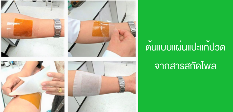 สูตรและกรรมวิธีผลิต “แผ่นแปะแก้ปวดจากสารสกัดไพล” เพื่อทดแทนผลิตภัณฑ์ในรูปแบบครีมซึ่งมักมีปัญหาปริมาณสารสำคัญมากหรือน้อยเกินไป (มากเกินไปทำให้เกิดการระคายเคือง น้อยเกินไปทำให้ประสิทธิภาพการออกฤทธิ์ในเวลาสั้น) โดยแผ่นแปะแก้ปวดออกฤทธิ์แก้ปวดและต้านการอักเสบของกล้ามเนื้อได้อย่างมีประสิทธิภาพ สะดวกและง่ายต่อการใช้งาน ออกฤทธิ์ได้นาน มีความเสถียร ไม่ก่อให้เกิดการระคายเคือง