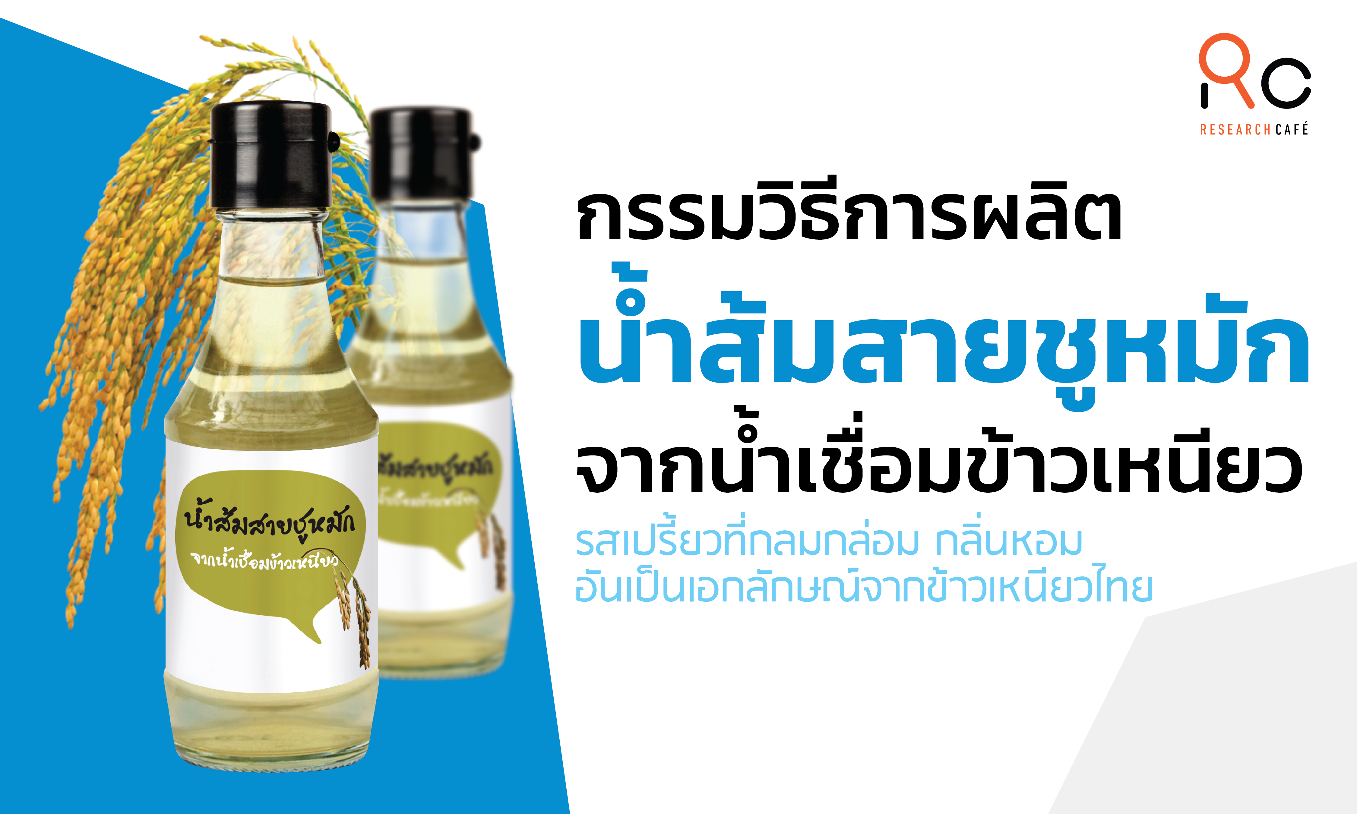 “นํ้าส้มสายชูหมักจากข้าว” อีกหนึ่งเครื่องปรุงรสยอดฮิตของไทยที่นิยมรับประทานคู่กับอาหารอย่างซูชิหรือข้าวปั้นที่คนไทยนิยมบริโภค ซึ่งปกติเครื่องปรุงรสชนิดนี้มักนําเข้าจากต่างประเทศ และมีราคาแพง นักวิจัยและผู้ประการจึงมีการวิจัยพัฒนานํา “น้ำเชื่อมข้าวเหนียว อินทรีย์” มาพัฒนาเป็น “น้ำส้มสายชู หมักจากน้ำเชื่อม ข้าวเหนียว” ที่ให้กรดอะมิโนที่สําคัญหลายชนิด มีรสเปรี้ยวที่กลมกล่อมกลิ่นหอมอันเป็นเอกลักษณ์จากข้าวเหนียวไทย