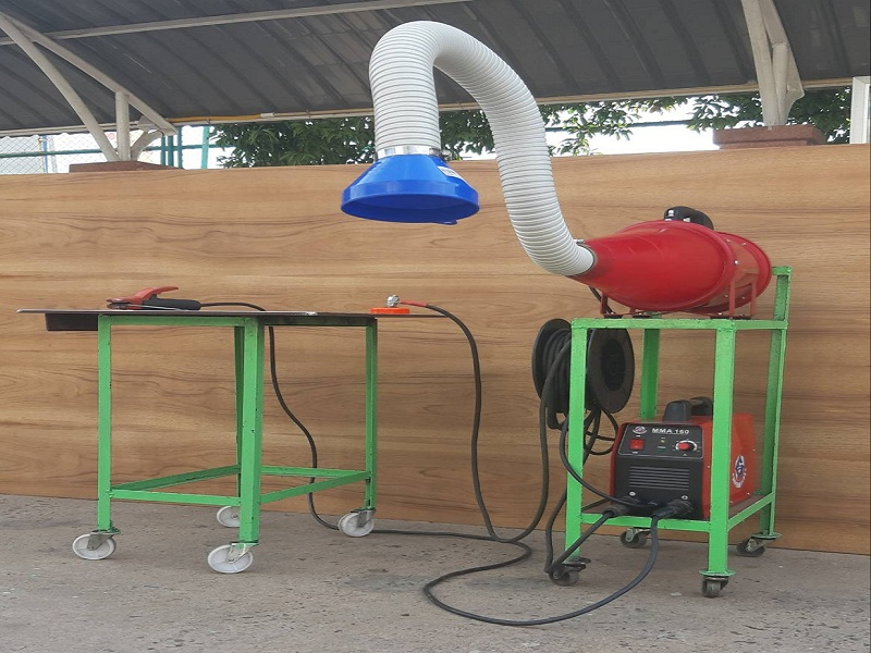 อุปกรณ์ดูดควันเชื่อมออกแบบให้มีขนาดกระทัดรัด โดยใช้พัดลมดูด-เป่าแบบท่อกลม ขนาด 8 นิ้ว วางไว้บนรถเข็นเครื่องเชื่อมไฟฟ้า เพื่อให้เคลือนย้ายได้สะดวก ท่อสำหรับดูดควันเชื่อม เลือกใช้ท่อดัดโค้งคงรูป สามารถปรับทิศทางได้ตามต้องการ อุปกรณ์ดูดควันเชื่อมจะมีหลักการทำงานคล้ายเครื่องดูดควัน ดูดกลิ่นที่ใช้ในห้องครัว ซึ่งประสิทธิภาพการทำงานจะขึ้นอยู่กับขนาดของพัดลมระบายอากาศ