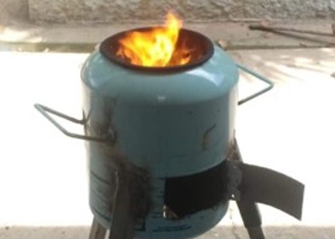 เตาชีวะมวลจากถังน้ำยาแอร์