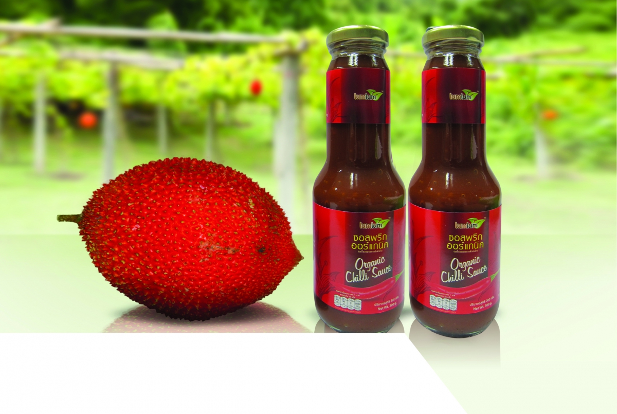 นวัตกรรมอาหารเพื่อสุขภาพที่ดี ซอสพริกอินทรีย์ที่มีไลโคพีน (lycopene) สูง ผลิตจากพริกชี้ฟ้าพันธุ์พื้นเมืองที่ปลูกในระบบเกษตรอินทรีย์ ผสมกับเยื่อหุ้มเมล็ดฟักข้าวอินทรีย์ที่อุดมด้วยไลโคพีน ซึ่งเป็นสารต้านอนุมูลอิสระในกลุ่มแคโรทีนอยด์ กลายเป็นซอสพริกที่มีคุณค่าทางอาหารสูง และได้รับรองมาตรฐานเกษตรอินทรีย์สากล
