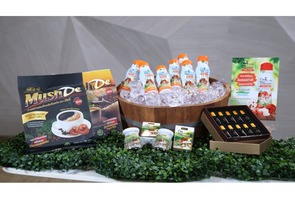 ผลิตภัณฑ์เห็ดหลินจือแปรรูปมีสรรพคุณทางยาช่วยยับยั้งเซลล์มะเร็ง มีมูลค่าทางเศรษฐกิจสูง จึงเริ่มต้นจากการทำฟาร์มเห็ดและสนับสนุนให้ชาวบ้านได้เรียนรู้วิธีเพาะเห็ด และนำเครื่องกะเทาะสปอร์เห็ดมาใช้ เพื่อเพิ่มสรรพคุณทางยาสำหรับกลุ่มผลิตภัณฑ์สปอร์เห็ดหลินจือสกัด ซึ่งเป็นยาแผนโบราณ และนำเห็ดหลินจือส่วนอื่น ๆ ไปพัฒนาเป็นผลิตภัณฑ์เพื่อสุขภาพอย่างหลากหลาย โดยคำนึงถึงความสะดวกและตอบโจทย์ความต้องการด้านสุขภาพของผู้บริโภค