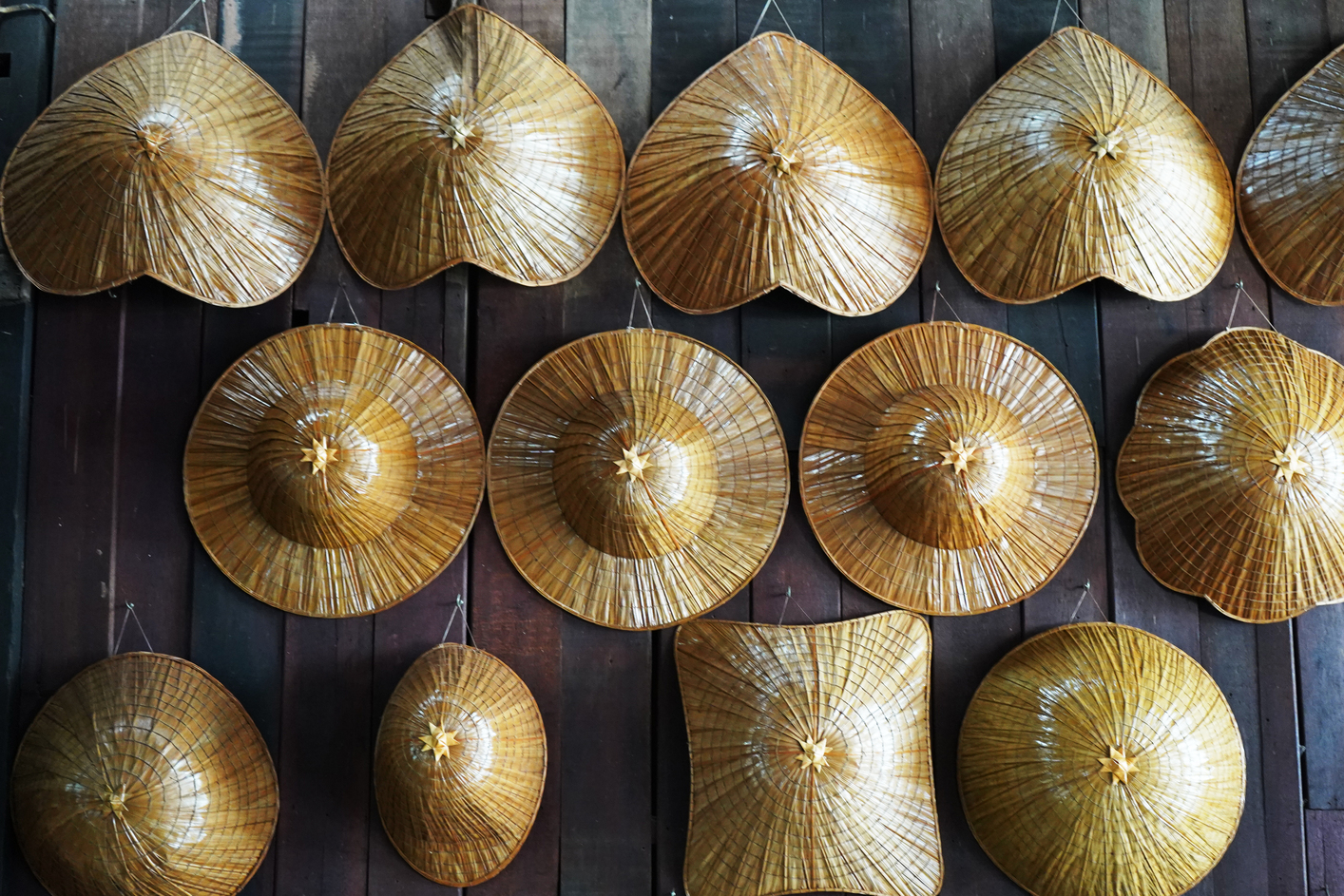 งอบผลิตจากโครงไม้ไผ่และปิดผิวด้วยใบจาก เป็นหัตถกรรมที่ยังคงใช้เทคนิคดั้งเดิมในการเคลือบผิวอย่าง 'น้ำมันยางธรรมชาติ' เป็นขั้นตอนที่ใช้เวลาในการผลิตนาน แต่ให้ความสวยงามและทนทานมากกว่าการเคลือบเชลแลค ในอดีตงอบใบจากใช้สำหรับเป็นหมวก ปัจจุบันถูกพัฒนารูปทรงให้มีความหลากหลาย เช่น ทรงกระทะ ทรงปะโหลก ทรงกระดองเต่า ทรงสมเด็จ ทรงหัวแหลมหกมุม เป็นต้น สามารถนำไปใช้ดัดแปลงทำงานตกแต่งภายในได้หลากหลายรูปแบบ